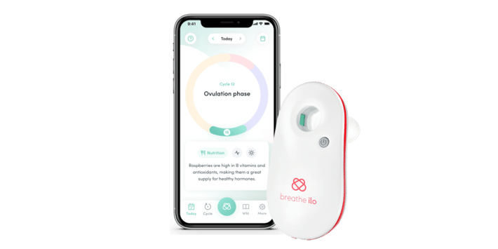 Breathe ilo is a discrete and portable device that measures CO2 levels in the breath of users to track and predict the menstrual cycle. It transmits hormone data that indicates fertility status to a smartphone app. A self-learning algorithm gets to know the user better with each cycle, helping make its predictions of fertility windows ever more accurate.